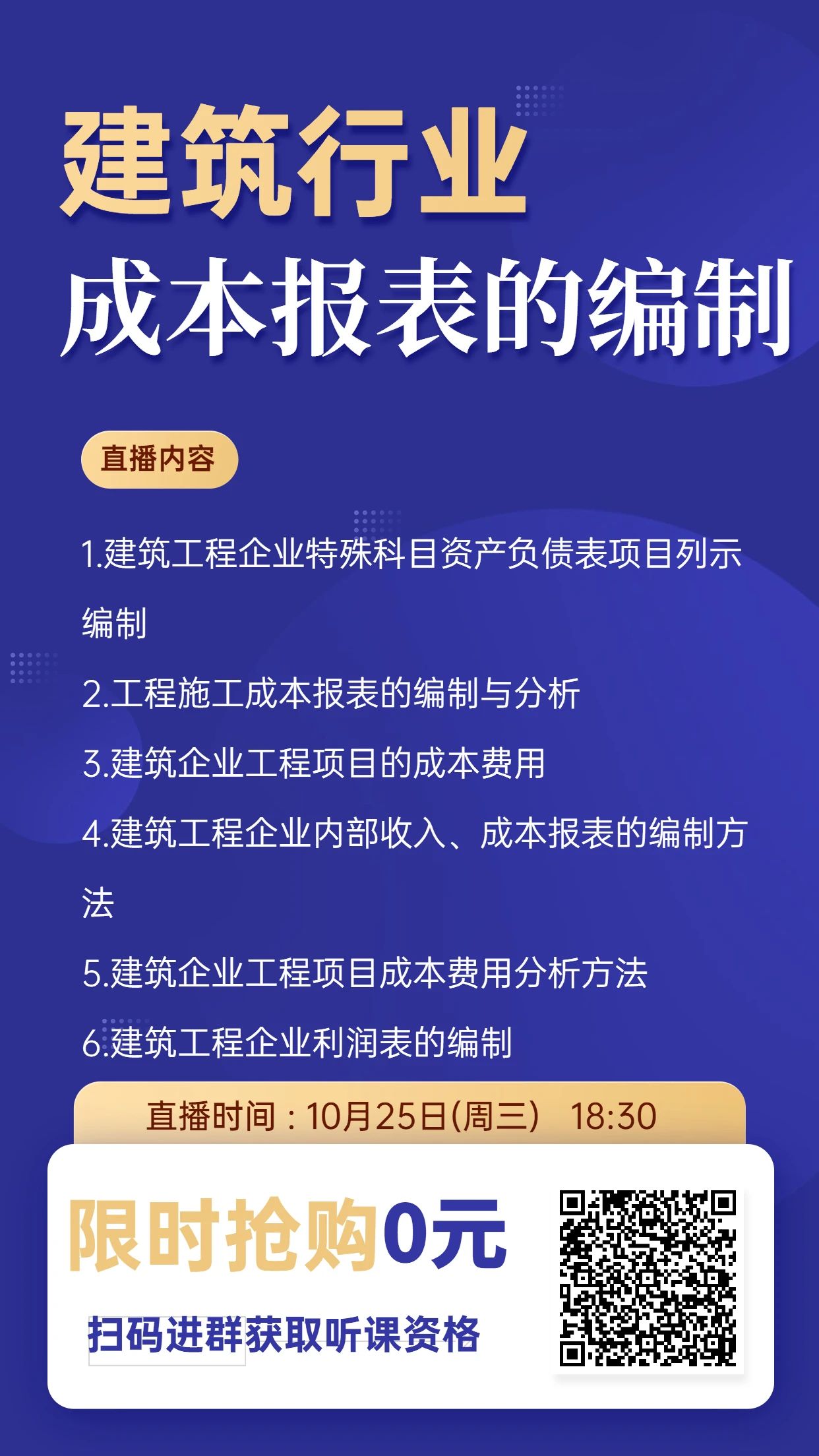 稅來稅往張老師將為大家?guī)砭€上直播課——《建筑業(yè)成本報(bào)表的編制與實(shí)操流程》